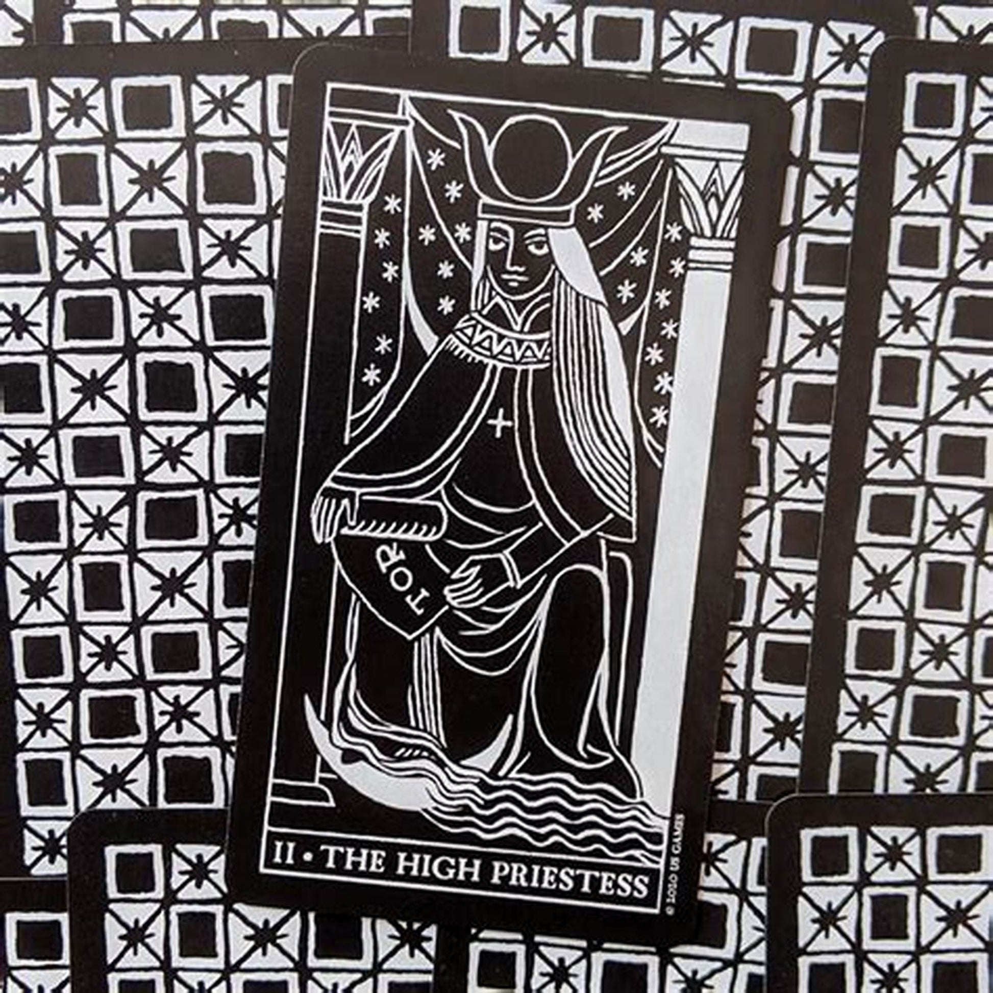 Explorez le Tarot Iversion de Jody Boginski Barbessi, une œuvre magistrale en noir et blanc qui vous invite à un voyage de réflexion profonde. Chaque carte présente un design magnifique, alliant une esthétique épurée à des symboles traditionnels du tarot, offrant ainsi une expérience visuelle et intuitive unique. Les contrastes forts du noir et blanc apportent une dimension supplémentaire à la lecture, favorisant la clarté et l'énergie de chaque tirage.