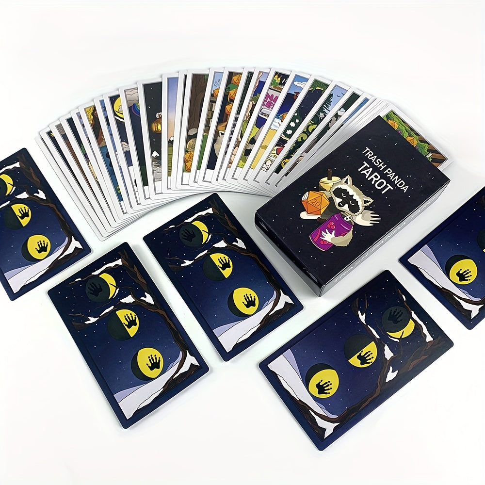 Découvrez le Trash Panda Tarot, un jeu de 78 cartes aussi espiègle qu’intuitif, inspiré par les ratons laveurs (trash pandas) et leur nature curieuse et imprévisible. Ce tarot original et plein d’humour vous propose une lecture à la fois légère et perspicace, tout en respectant la structure du système Rider Waite.
